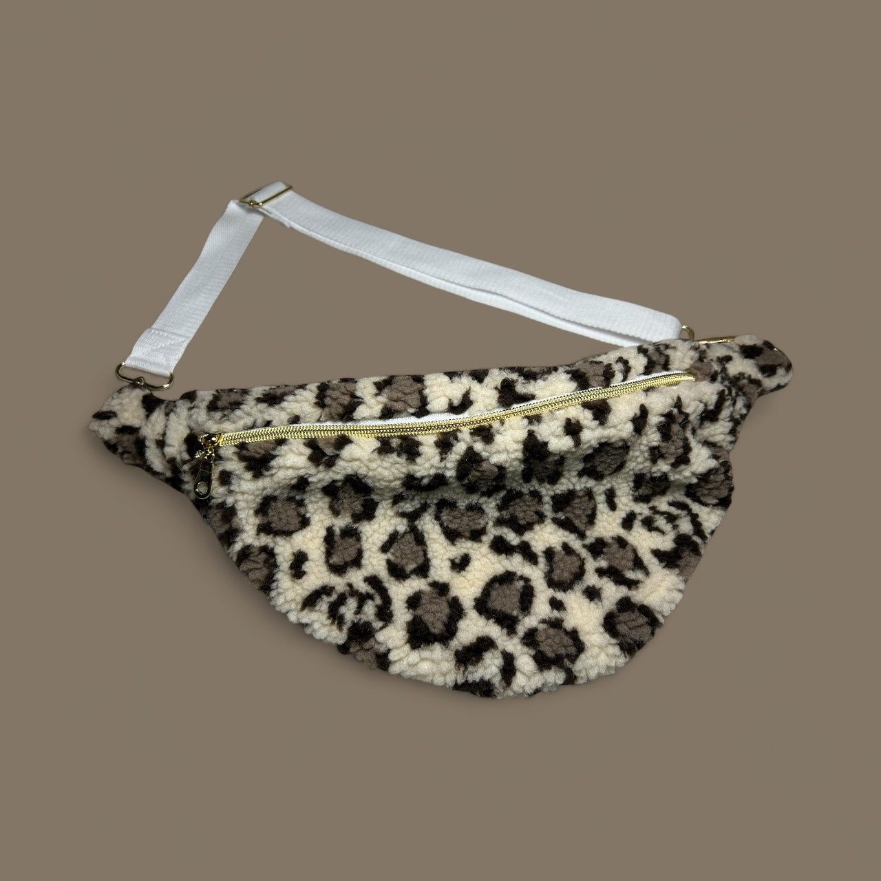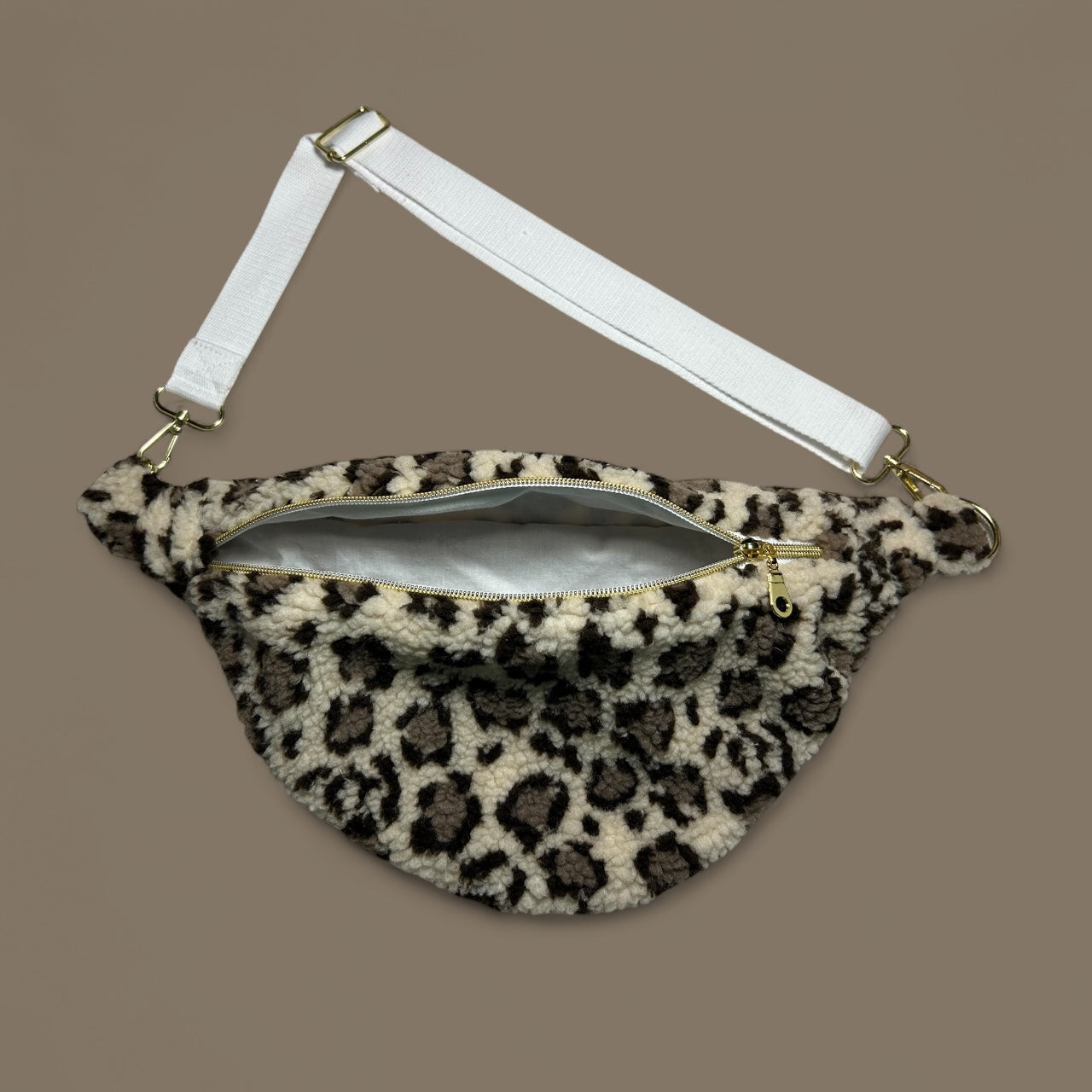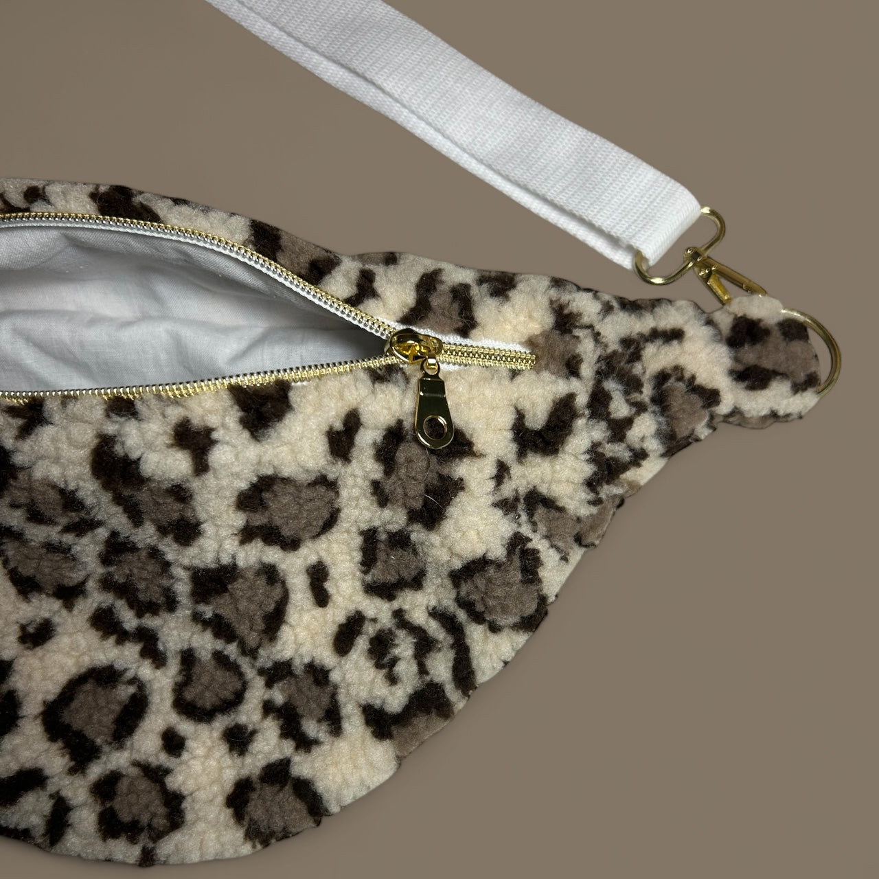 Banane sherpa léopard, intérieur en coton uni blanc.